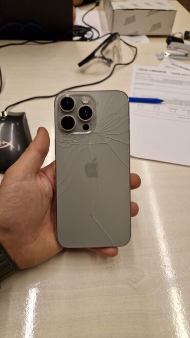Komplekt/əlavələr: şəkillərdə göründüyü kimi cihaz. Rəng: açıq boz (Titan Gray). Arxa şüşədə çat olduğu üçün ucuz satılır, ön tərəfdə ekran qoruyucu/şüşə var. Çərçivə titan rəngindədir, yan düymələr və kamera adası yerindədir.