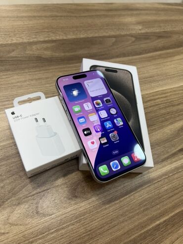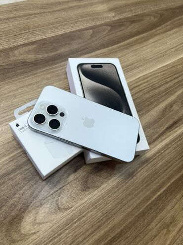 Apple iPhone (Pro seriyası) Xüsusiyyətlər: - Korpus: fırçalanmış titan çərçivə, mat arxa səth, kvadrat kənarlar - Rəng: boz/titan tonu - Ekran: tam ekran panel, ön hissədə Face ID üçün Dynamic Isl...