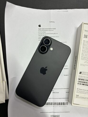 Məhsul: Apple iPhone 16 – 128 GB, Qara (Schwarz) Xüsusiyyətlər: - Model: iPhone 16 (qutuda və sənəddə qeyd olunub) - Yaddaş: 128 GB - Rəng: Qara - Ikili arxa kamera sistemi + LED flaş - Ön ekran t...