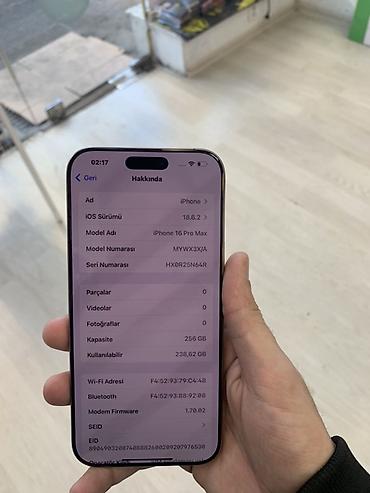 - Model: iPhone 16 Pro Max (model nömrəsi MYWX3X/A, ekran görüntüsündə “Hakkında” bölməsində qeyd olunub)