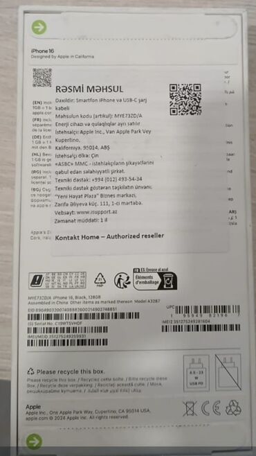 - IMEI/Serial nömrələri etiketdə qeyd olunub