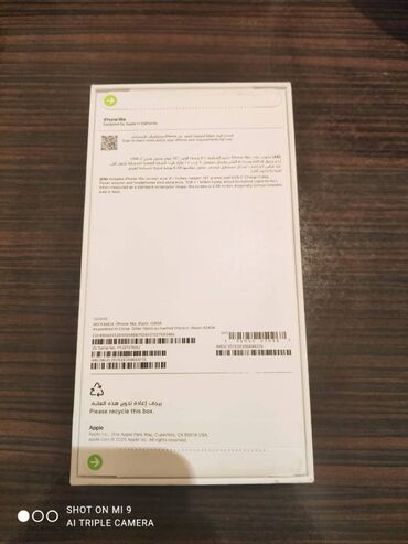 - Orijinal Apple qablaşdırması, arxa tərəfdə spesifikasiyalar, serial nömrələri və barkodlar mövcuddur
