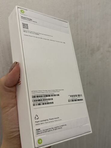 Qeyd: Şəkillərdə qutunun arxasında göstərilən məlumatlar rəsmi etiketlərdən götürülüb; cihaz rəngi Cosmic Orange və yaddaş həcmi 256 GB olaraq qeyd olunub.