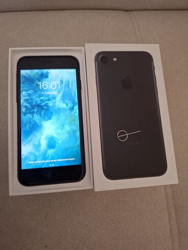 Apple iPhone 7 barteerde var - Rəng: Qara arxa panel, ön hissə ağ - Ekran: 4.7" Retina HD, Touch ID düyməsi ilə - Arxa kamera: tək kamera + LED fləş - Ön kamera: FaceTime kamera - SIM: Nano‑SIM - ...