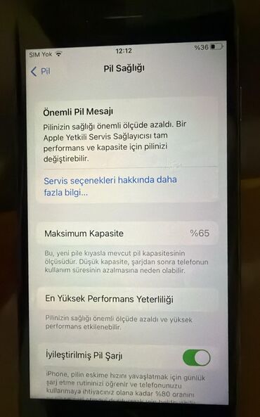 - Pil məlumatı: “Pil Sağlığı” bölməsində maksimum tutum 65% göstərilir, “Yüksək performans yeterliliyi” bildirişi mövcuddur