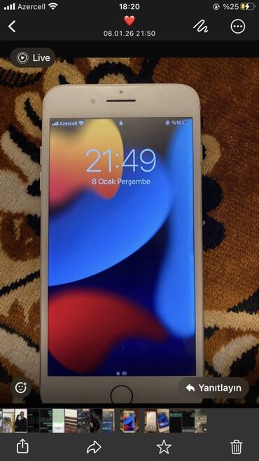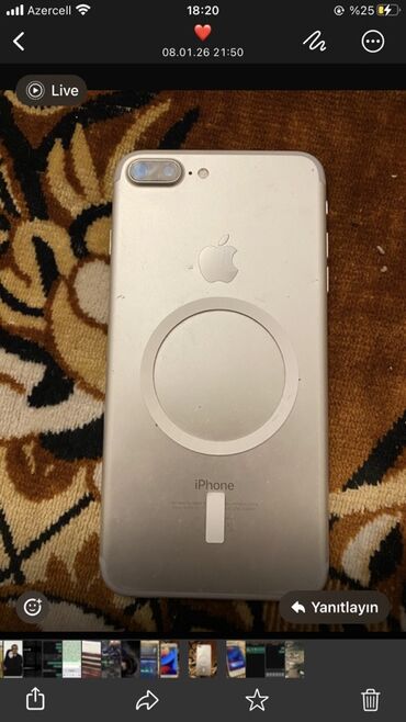 Apple iPhone 7 Plus — Gümüş rəng Ekranda balaca ləkə var ama işləməyinə maneçilik yaratmır 2 ci sahibiyəm pili 70%dir dəyişilməyib sadəcə olaraq ekranda balaca ləkə var bu telefonun işləməyinə pro...