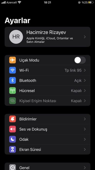 - Wi‑Fi, Bluetooth, Hüceyrə bağlantısı menyuları normal işlək