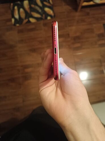 Apple iPhone – RED rəng (Product RED) - Arxa tərəf: qırmızı rəng, Apple loqosu, ikili arxa kamera və LED flaş - Ön tərəf: Touch ID düyməli ekran - Ekranda iOS kilid ekranı görünür - SIM kart yuvası...
