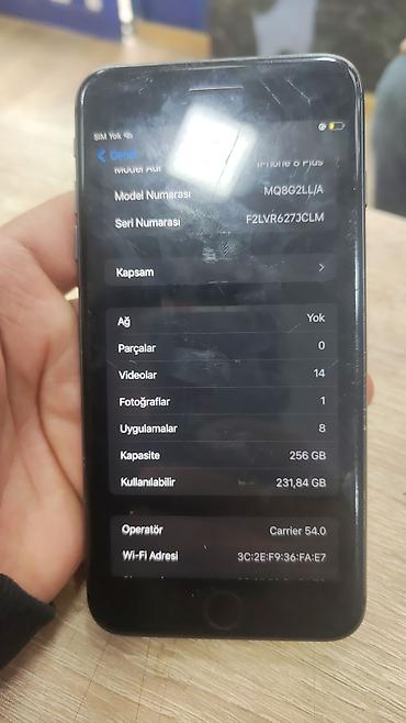 Məhsul: iPhone 8 Plus - Yaddaş: 256 GB (231.83 GB istifadə oluna bilir) - iOS versiyası: 16.7.13 - Model adı: iPhone 8 Plus - Model nömrəsi: MQ8G2LL/A - Seri nömrəsi: F2LVR627JCLM - Rəqəmsal məzmu...