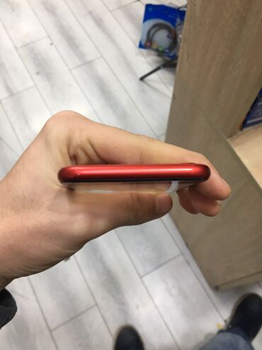 Apple iPhone – RED rəng (Product RED) - Arxa tərəf: qırmızı rəng, Apple loqosu, ikili arxa kamera və LED flaş - Ön tərəf: Touch ID düyməli ekran - Ekranda iOS kilid ekranı görünür - SIM kart yuvası...