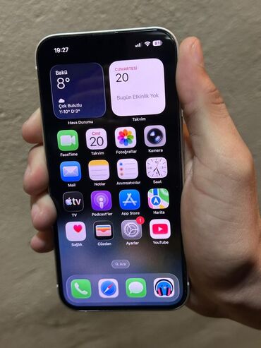 Apple iPhone (Pro seriyası) - Rəng:Qızılı /White - Korpus: parlaq paslanmayan polad çərçivə, şüşə arxa panel - Ekran: tam ekran OLED (Dynamic Island kəsiyi), yüksək parlaqlıq və rəng dəqiqliyi - K...