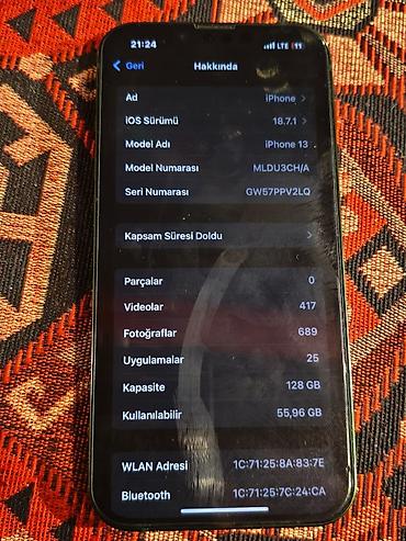 İphone – 13 128Gb Tam Problesiz və Təmirsiz Telefondur Qətiyyən Bir Problemi Yoxdur Nöqtə Ciziqsiz Telefondur Face İd İşləkdir True Tone Aktivdir Bir Sözle Zavod Telefondur Barter Yoxdur Pil:87% ...