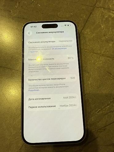 Apple iPhone – qrafit rəng Xüsusiyyətlər: - Arxa tərəfdə ikiqat kamera sistemi və LED flaş - iOS Batareya Məlumatı ekranına görə: - Pil Sağlığı: Normal - Maksimum Kapasite: 100% - Devir Sayı...