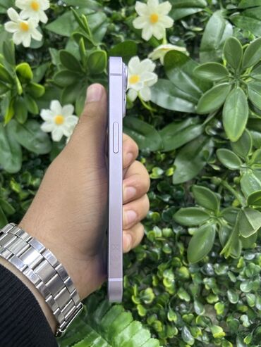 Satılır iPhone 14 – 128 GB yaddaş, Purple (bənövşəyi) rəngdə model.