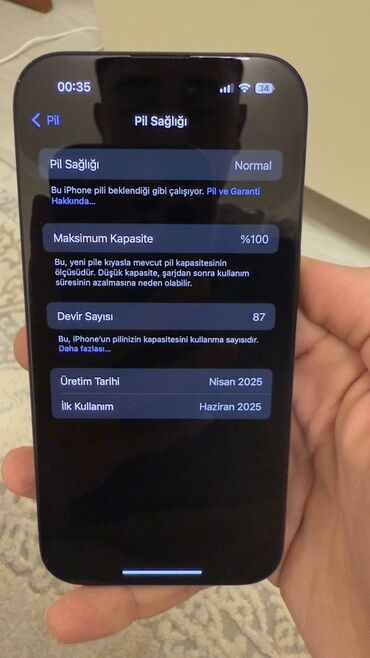 Apple iPhone (USB‑C) – Mavi rəng Xüsusiyyətlər: Telefon zavoddur! 2ci telefon kimi isletmisem Ekran tertemiz çekilis super kamerasının qoruyucusunda yüngül cızıg var adapter karobka üsdündə verilə...