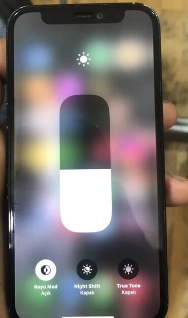 - Tam ekranlı displey, İdarəetmə Mərkəzi seçimləri: Koyu Mod (Açıq), Night Shift (Kapalı), True Tone (Kapalı)