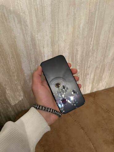 Apple iPhone – qara rəngli model, qutusu ilə. Xüsusiyyətlər: - Dynamic Island kəsiyi olan tam ekran ön panel - İkiqat arxa kamera sistemi (geniş + ultra‑geniş), LED işıq - Qara mat korpus, düz kən...