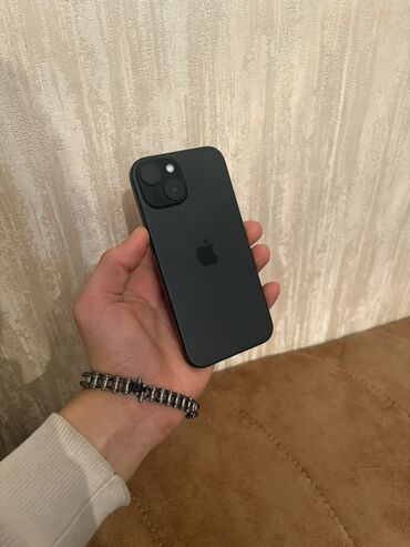 Apple iPhone (qara rəng) Xüsusiyyətlər: - Korpus: mat qara arxa panel, alüminium çərçivə - Ekran: tam ekran ön panel, Dynamic Island kəsiyi - Bağlantı: USB‑C portu, stereo dinamik çıxışları - Kame...