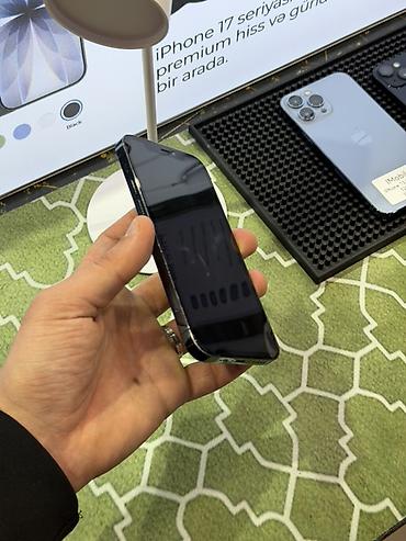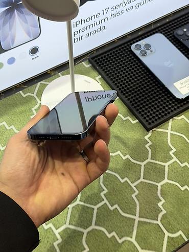 Apple iPhone (Pro seriyası) Xüsusiyyətlər: - Rəng: Göy (mavi ton) - Korpus: Düz kənarlı metal çərçivə, şüşə arxa panel - Ekran: Tam ekran ön panel, Face ID üçün ön çıxıntı (notch) - Arxa kamera: 3...