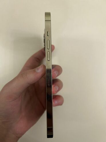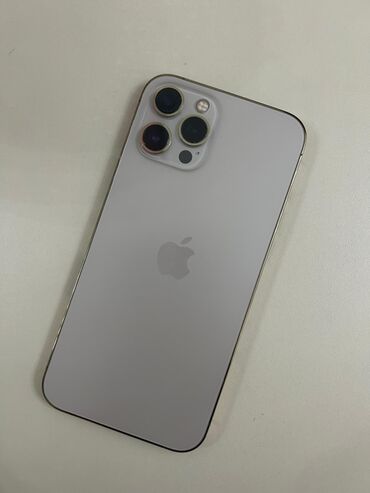 Apple iPhone (12 Pro max seriyası) - Rəng: qızılı/şaampan ton - Korpus: düz kənarlı metal çərçivə, mat arxa panel - Ekran: tam ekran, Face ID üçün ön modul kəsiyi - Kamera sistemi: arxada kvadrat ...