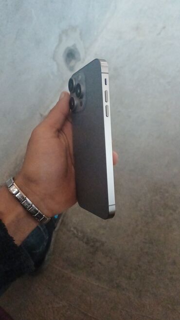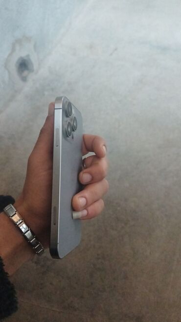 Apple iPhone (Pro seriyası görünüşü) – titan boz rəngdə gövdə və düz kənarlı premium dizayn.