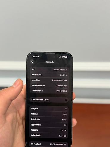 İphone 14 pro max 86% yalniz ekrani deysib face id isleyir 128 gb arxa kamera 05x islemir her bir funksiya islekdir