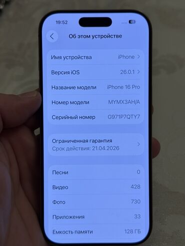 Apple iPhone 16 PRO MAX 256 GB 100% pil səviyyəsi. Özüm işlətmişəm. Çox səliqəli istifadə olunub. 6 aydır alınıb. Heç bir problemi yoxdur. Ustada qətiyyən olmayıb. İdeal vəziyyətdə. Qutusu, orginal...