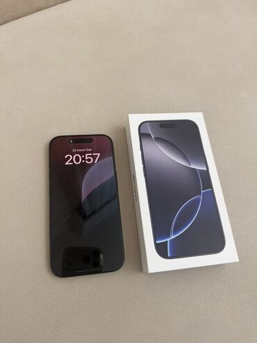 IPhone 16 Pro – 256 GB, qara rəng - Dynamic Island ön panel, 6.1" Super Retina XDR ekran - Orijinal qutu və USB‑C to Lightning şarj kabeli ilə - Batareya sağlamlığı: 100% (Pill Sağlığı ekranı şəkil...