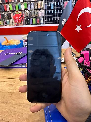 Məhsul: Apple iPhone (Pro seriyası, qara/space black rəng) - Ekran: tam ekran OLED, Face ID çentiği, Always‑On kilid ekranı - Arxa kamera sistemi: 3 linza (geniş, ultra‑geniş, telefoto) + LED fləş ...