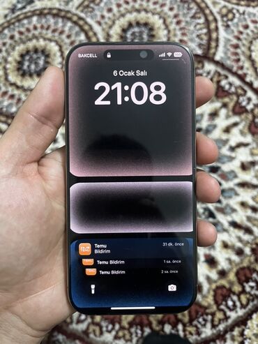 Apple iPhone 14 Pro Kontakt home dan alınıb,nöqtə belə yoxdu üstündə,Face ID,true ton,hər bir şeyi əla çalışır,kiçik bir problem belə ola bilməz,arxası açılmayıb,pil 80%