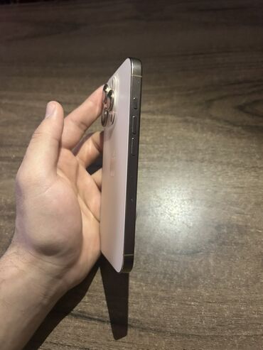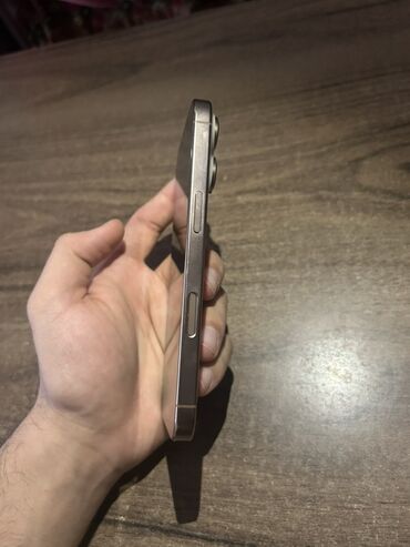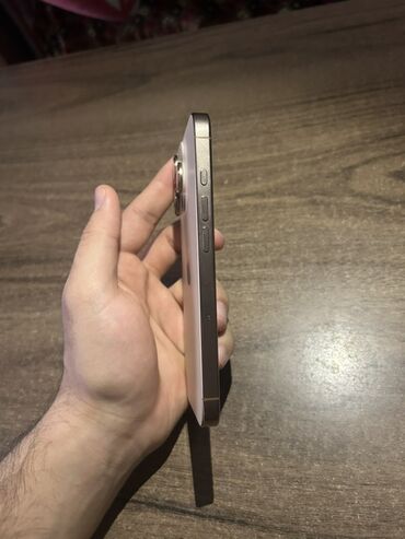 Apple iPhone (Pro seriyası) - Korpus: Desert Titanium - Ekran: Dynamic Island kəsiyi olan tam ekran panel - Kamera: üç ədəd arxa kamera və LED işıq - Batareya: Battery Health – Normal; Maksimum t...
