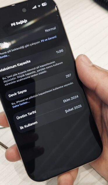 İphone 16pro , 128 yaddaş , pil 96%. Hərbir funksiyası işləkdi