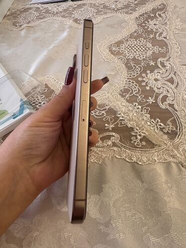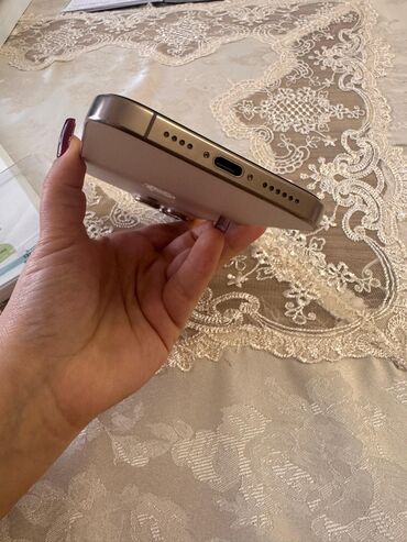 Apple iPhone (15 Pro max seriyası) -Pil faizi: 90% - Rəng: natural titanium - Korpus: parlaq şüşə,titan effekti olan çərçivə - Ekran: Tam ekran OLED, dinamiki ada sahəsi (öndə mərkəzdə kamera kəsiy...