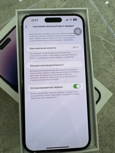 Apple iPhone 14 Pro Max – Deep Purple, 128 GB 83 pil. Ustada olmayib xanim ishledim. Xüsusiyyətlər: - Rəng: Deep Purple - Yaddaş: 128 GB - Ekran: 6.7" Super Retina XDR, ProMotion 120Hz - Dynamic Is...