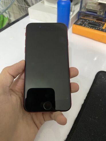 Apple iPhone – RED rəng (Product RED) - Arxa tərəf: qırmızı rəng, Apple loqosu, ikili arxa kamera və LED flaş - Ön tərəf: Touch ID düyməli ekran - Ekranda iOS kilid ekranı görünür - SIM kart yuvası...