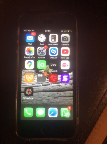 Telefon çalışır, ekran və menyular göstərildiyi kimidir. iOS ilə istifadəyə hazırdır; zəng, mesaj, bank və naviqasiya kimi gündəlik tətbiqlər quraşdırılıb. Nano‑SIM dəstəyi var. Lightning kabellə enerji yığır, qulaqcıq girişi mövcuddur. Kompakt ölçünü sevənlər üçün ideal seçimdir.