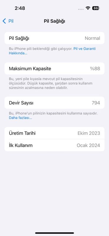 - Pil Sağlığı statusu: Normal