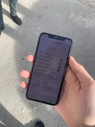 İdeal veziyyetde x. Telefon ustada olmayıb açılmayıb her şeyi işlekdi face id true tone aktivdi. Adapter qutu kabro verirem üstünde