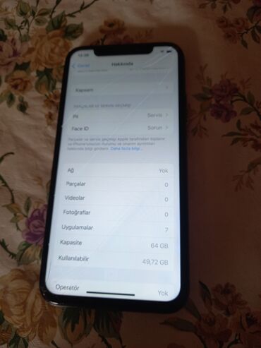 Apple iPhone (qara) - Model: iPhone XS seriyası xs 64/4 modelidir problemsiz ideal telefondur 100pildir yanlız face id işləmir cızığsız telefondur qiymətdə yüngül endirim edərəm kabro,qoruyucu ü...