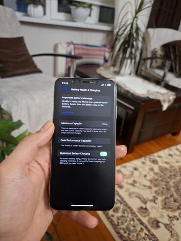 - Batareya səhifəsində “Maximum Capacity: 100%” göstərilir. Ekranda “Unable to verify this iPhone has a genuine Apple battery” məlumatı çıxır.