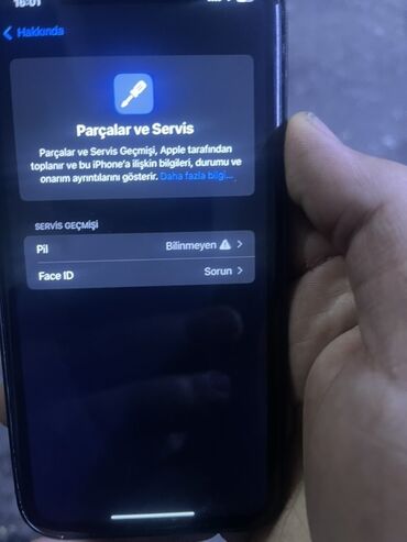 - Face ID ilə bağlı problem bildirişi mövcuddur. Pille bağlı “bilinməyən” qeydi göstərilir.