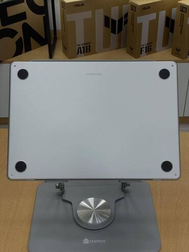 Fotoşəkillərdə göstərilən Fantech tənzimlənən noutbuk stendi ilə nümayiş olunur.