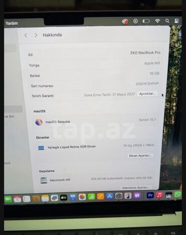- Daxili yaddaşdan görünən: təxminən 494 GB (325 GB boş görsənir)