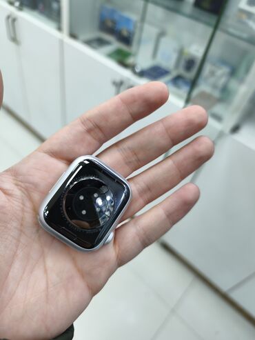Apple Watch korpusu (Series 4/5/6/SE ölçü 40 mm) - Gümüş rəngli alüminium korpus - Qara şüşə ön panel, arxa hissə keramika/şüşə sensor modulu ilə - Digital Crown və yan düymə - Sürətli dəyişən kəm...