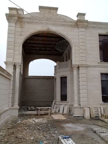 - Fasadların aqlay daşla üzlənməsi, dekorativ sütun, karniz, pilastr və naxışlı elementlərin hazırlanması və quraşdırılması