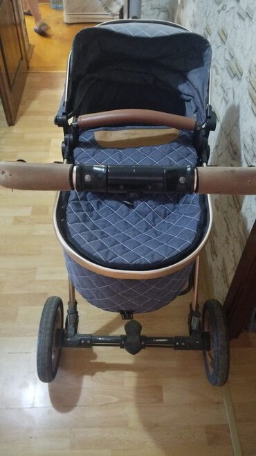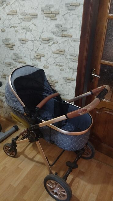 Uşaq arabası – bebekon tipli, yataq səbəti ilə - Rəng: tünd boz/krem-qızılı şassı - Dönər şassi: oturacaq/səbət valideynə və ya irəli baxacaq şəkildə çevrilə bilir - Geniş, dərin beşik tipli səbət...