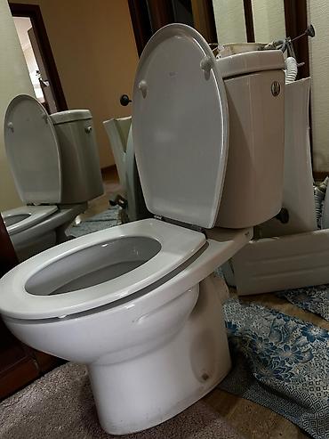 - Unitaz komplekti: üst düyməli su çəni, oturacaq və qapaqla birlikdə.
