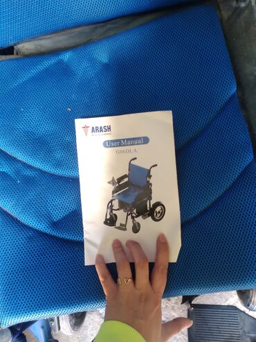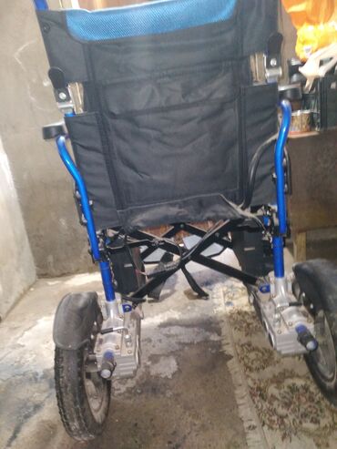 Elektrik təkərli kreslo - İdarəetmə: Sağ tərəfdə joystick paneli (güc düyməsi, sürət tənzimləmə və istiqamət nəzarəti). - Konstruksiya: Möhkəm mavi alüminium/metal çərçivə, qatlanabilən arxa dayaq...