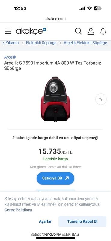Arçelik S 7590 Imperium 4A tozsoranı, evinizi təmizləmək üçün güclü və etibarlı bir cihazdır. 800 Vt gücü ilə təchiz edilmiş bu tozsoran, effektiv təmizlik təmin edir. Qab toz qəbul edicisi ilə təchiz olunmuşdur, bu da təmizlik prosesini asanlaşdırır. Qırmızı rəngdədir və 3 litr toz qabı həcminə malikdir. Həmçinin, park səthləri və xalça örtükləri üçün başlıqlar və toz fırçası ilə təchiz edilmişdir. 9 metrlik naqili ilə geniş ərazini əhatə edə bilir.