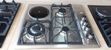 Quraşdırılan kombi tipli soba paneli – qaz + elektrik - 4 ocaq zonasından ibarət: 3 qaz gözüyü + 1 elektrik plitəsi (sol tərəfdə dairəvi “qırmızı nöqtəli” elektrik gözü). - Müxtəlif markalı varian...